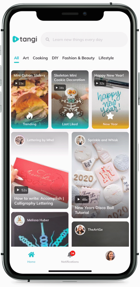 Tampilan Tangi mirip Pinterest dan Tiktok