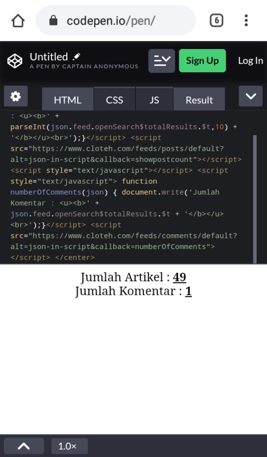 Dengan menggunakan script ini tidak hanya jumlah postingan yang bisa dilihat, tetapi juga sudah ditambahkan script untuk melihat jumlah total komentar. Jadi bisa tahu berapa total komentar yang dikirim pada blog tersebut.