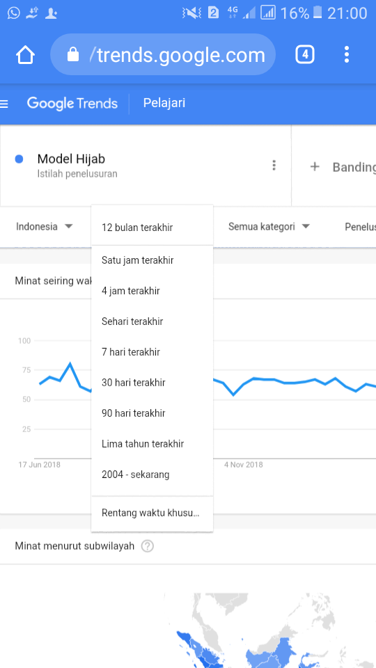 Oke lanjut, disini saya akan mencoba mempelajari atau riset kata kunci ‘MODEL HIJAB‘. Maka silahkan ketik di kolom pencarian tadi dan klik enter.